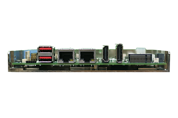 Объем оперативной памяти составляет 8 ГБ LPDDR4x с частотой 3200 МГц, с возможностью расширения до 16 ГБ, что позволяет эффективно работать с ресурсоемкими приложениями. Для хранения данных предусмотрен один порт SATA III (6 Гбит/с) и два слота M.2: M.2 Key B для накопителей и M.2 Key A для модулей Wi-Fi и Bluetooth, обеспечивая гибкость в выборе периферийных устройств.