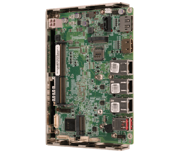 Плата поддерживает до 16 ГБ оперативной памяти DDR4 SO-DIMM с частотой до 2933 МГц, что позволяет эффективно работать с ресурсоемкими задачами. Для хранения данных предусмотрен один разъем SATA III (6 Гбит/с), обеспечивающий быструю передачу данных. Видеовыходы HDMI и DisplayPort поддерживают разрешение 4K, позволяя подключать два независимых дисплея для отображения информации в реальном времени.
