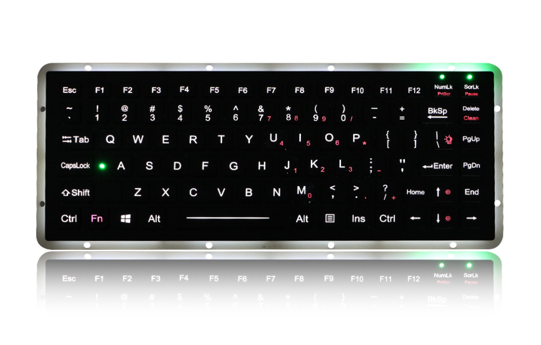 Клавиатура оснащена 86 клавишами с ресурсом не менее 5 млн. нажатий каждая. Технология карбоновых контактов ('carbon on gold') обеспечивает четкую тактильную отдачу и долговечность. Сила нажатия составляет 1,5 Н, а ход клавиш — 1,2 мм. Передняя панель выполнена из силикона, что придает устройству гибкость и устойчивость к механическим повреждениям.