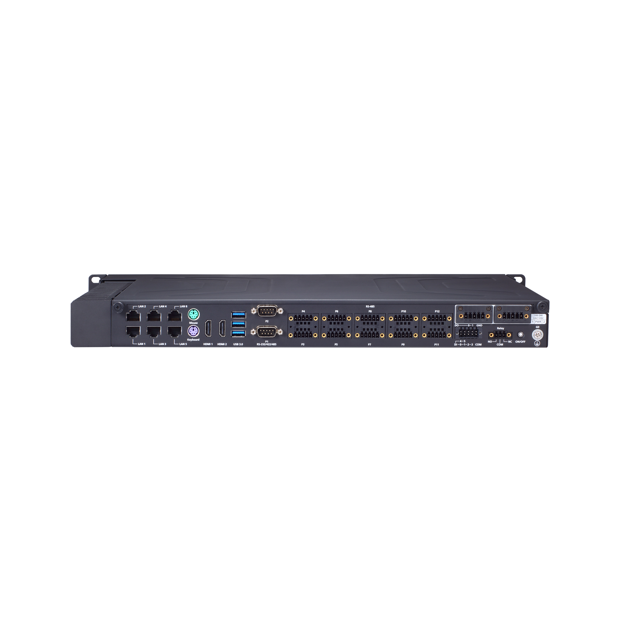 В наличии шесть портов Ethernet 10/100/1000 Мбит/с (RJ-45), два порта USB 2.0 и три порта USB 3.x, а также два последовательных порта RS-232/422/485 и десять портов RS-485, что обеспечивает широкие возможности подключения периферийных устройств и интеграцию с различными системами.