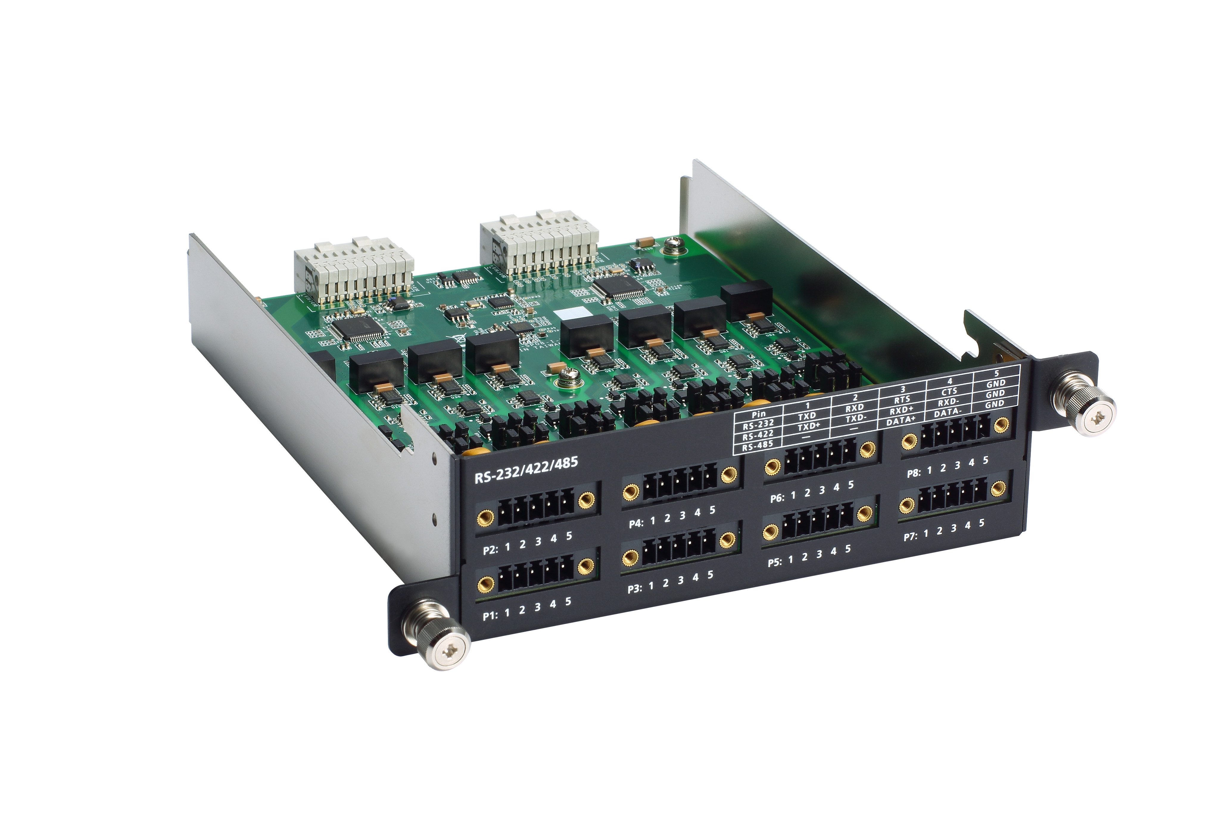 - Количество портов: 8 последовательных портов RS-232/422/485, обеспечивающих гибкость в выборе интерфейса в зависимости от требований системы.