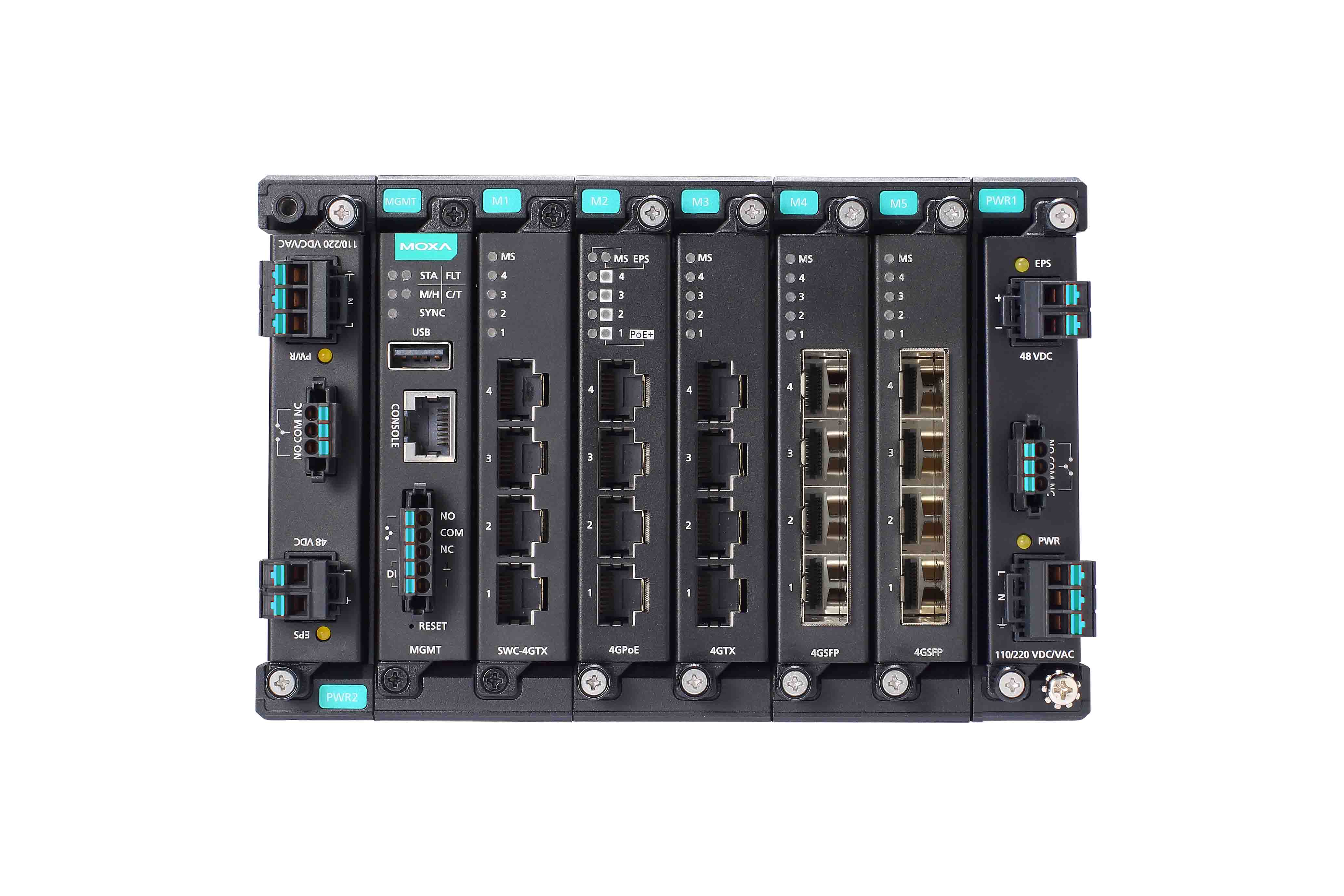Коммутатор MDS-G4020 от компании MOXA Inc. представляет собой модульный управляемый Ethernet-коммутатор второго уровня, оснащенный четырьмя встроенными портами Gigabit Ethernet и четырьмя слотами для установки дополнительных модулей серии LM-7000H. Это решение обеспечивает гибкость в расширении сети, позволяя адаптировать количество портов под конкретные потребности предприятия.