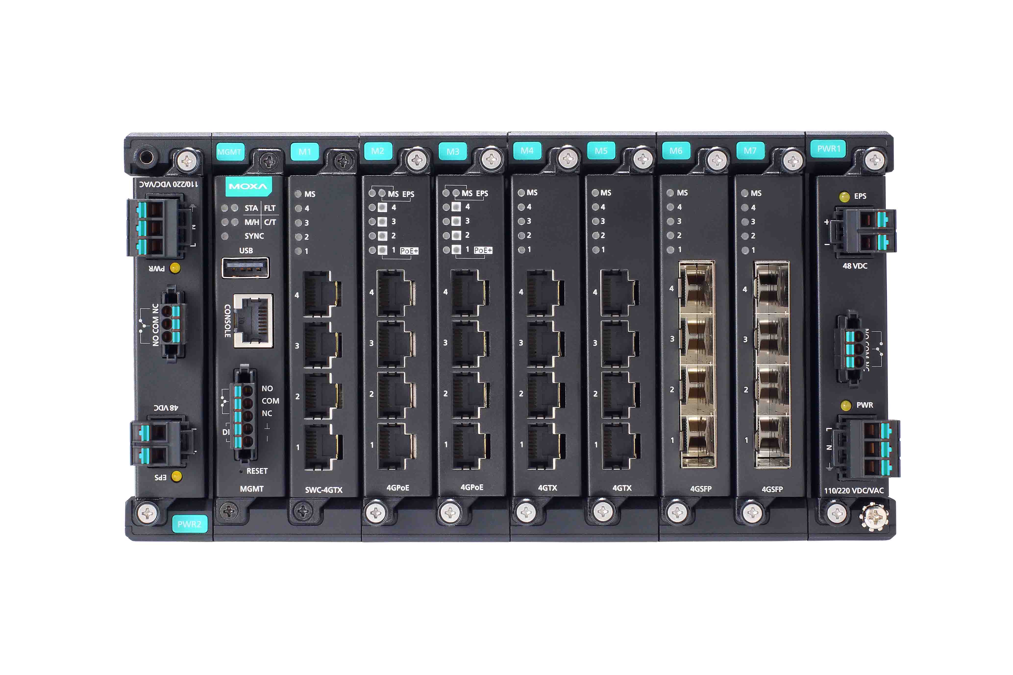 Коммутатор MDS-G4028 от компании MOXA Inc. представляет собой модульный управляемый Ethernet-коммутатор уровня 2, предназначенный для построения надежных и масштабируемых промышленных сетевых инфраструктур. Он оснащен четырьмя встроенными портами Gigabit Ethernet и шестью слотами для установки дополнительных модулей, что позволяет расширить количество портов до 28, обеспечивая гибкость и адаптивность под различные требования.