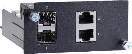 - Количество портов: 2 комбинированных порта Gigabit Ethernet, поддерживающих как медные соединения (10/100/1000BaseT(X), разъемы RJ-45), так и оптоволоконные (100/1000BaseSFP).