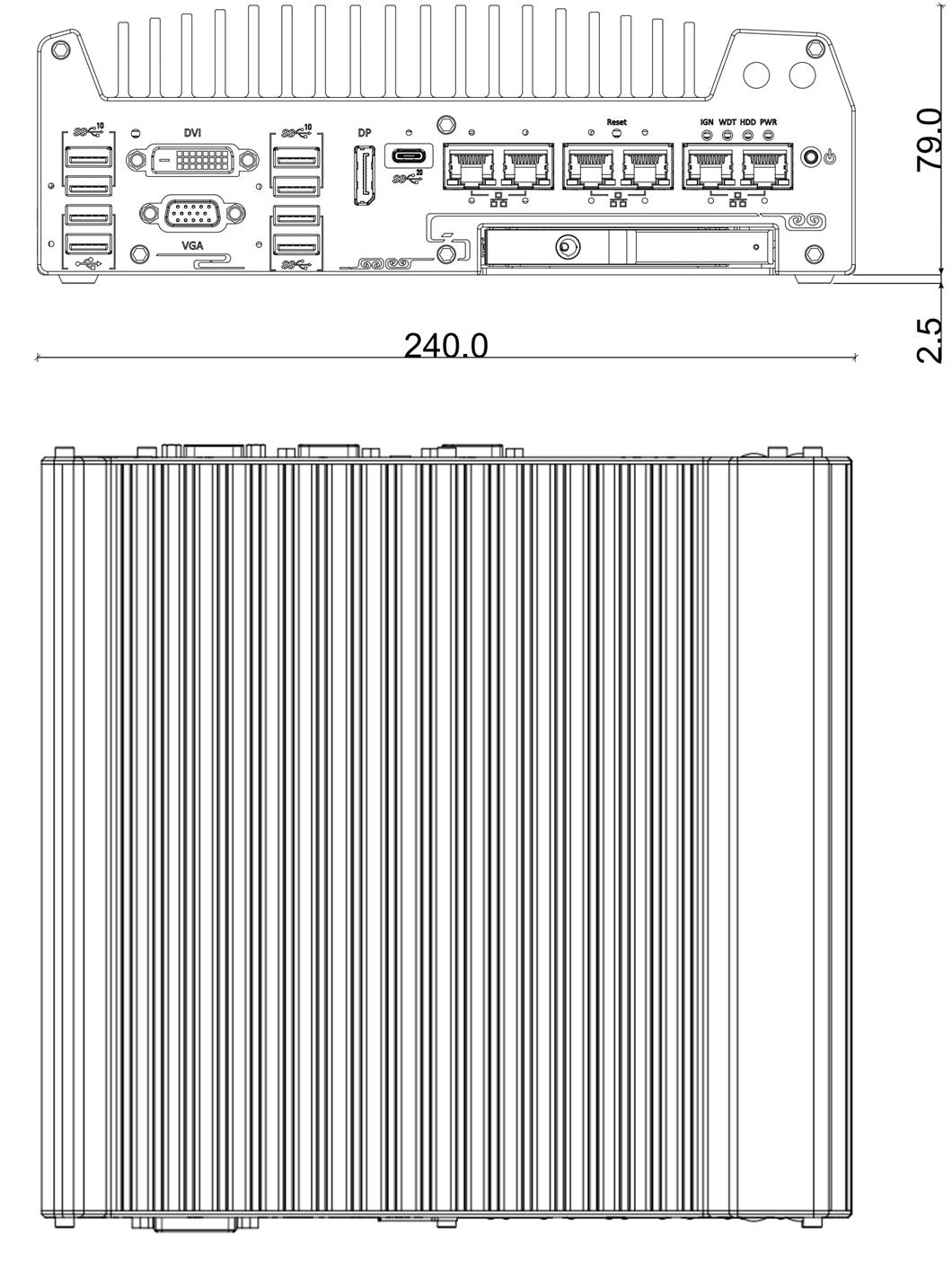 Nuvo-9002LP(EA) оснащен процессорами Intel Core 12-го поколения, включая модели i3, i5, i7, i9, а также Intel Celeron и Pentium. Максимальный объем поддерживаемой оперативной памяти составляет 64 ГБ стандарта DDR5-4800. Для хранения данных предусмотрены два слота для 2,5-дюймовых SSD/HDD и один слот M.2 2280 M-Key. Сетевые возможности включают два порта Ethernet: один 2,5 Гбит/с и один Gigabit Ethernet. Интерфейсы USB представлены шестью портами USB 3.2 Gen2x1, двумя USB 2.0 и одним USB 3.2 Gen2x2 Type-C. Для расширения функциональности доступны слоты M.2 Key B, MezIO и Mini PCIe. Видеоинтерфейсы включают DVI-D, DisplayPort и VGA. Диапазон входного напряжения питания составляет от 8 до 48 В DC. Система охлаждения пассивная, что обеспечивает бесшумную работу устройства. Габаритные размеры составляют 240 x 225 x 90 мм, а вес — 4,4 кг. Устройство сертифицировано по стандартам CE, FCC Class A, EN 55032/35. Рабочая температура варьируется от -25°C до +70°C, что позволяет использовать компьютер в различных климатических условиях.