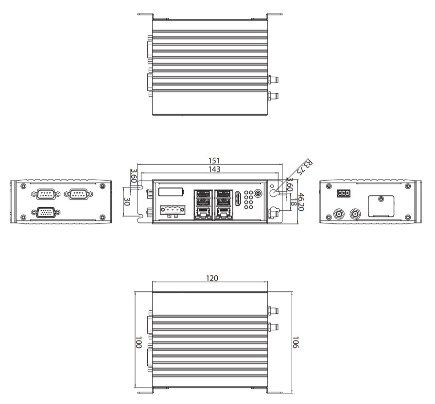 - Порты ввода-вывода: четыре порта USB 3.0 для подключения периферийных устройств, два порта RS-232/422/485 с автоматическим управлением потоком для промышленного оборудования, слот для SIM-карты и слот для SD-карты для расширения функциональности.