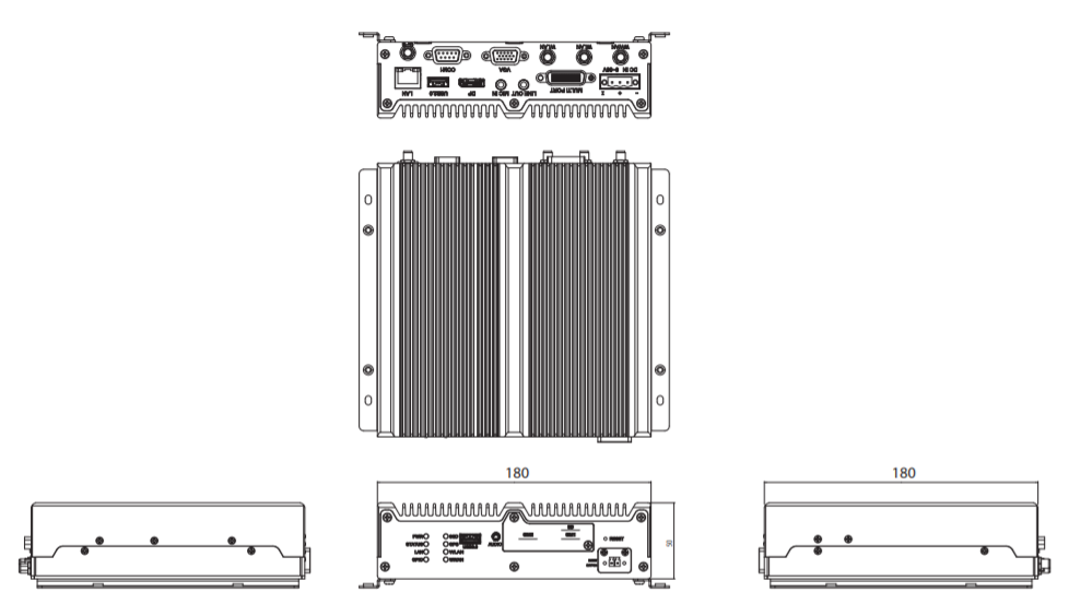 Видеовыходы VGA и DisplayPort поддерживают разрешение до 2560 x 1600 пикселей при 60 Гц, что подходит для подключения к промышленным дисплеям.