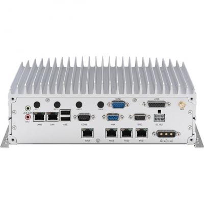 Компьютер оснащён двумя портами Gigabit Ethernet (LAN), одним портом RS-232, одним портом RS-422/485 и четырьмя портами USB 2.0. Для расширения функциональности предусмотрены два слота Mini PCIe, а также поддержка CFast и 2,5-дюймовых накопителей SATA II. Видеоинтерфейсы включают LVDS и VGA, что позволяет подключать различные дисплеи. Дополнительно имеется модуль GPS для навигационных приложений.