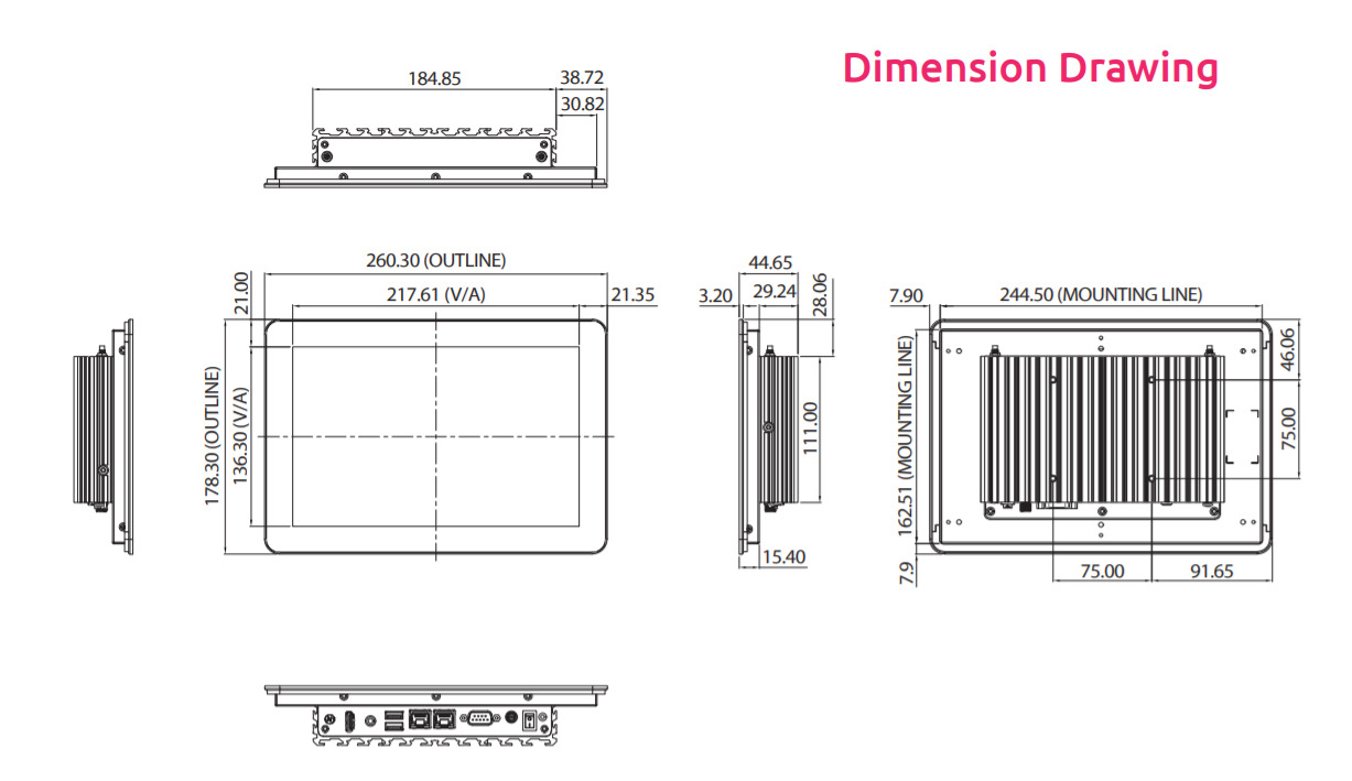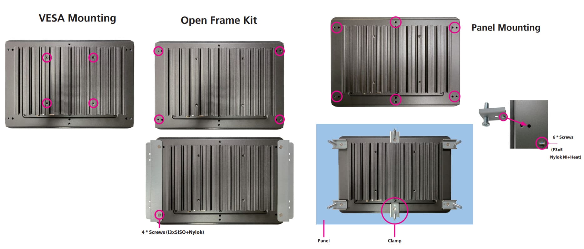 Устройство поддерживает монтаж в различных конфигурациях: на стене, в панели или в открытой раме, что обеспечивает гибкость при установке. Внешний адаптер питания с входным напряжением 100 ~ 240 В AC и выходным 19 В DC гарантирует стабильную работу устройства в различных условиях электроснабжения. Рабочая температура устройства составляет от 0°C до +50°C, что расширяет возможности его применения в различных климатических зонах.