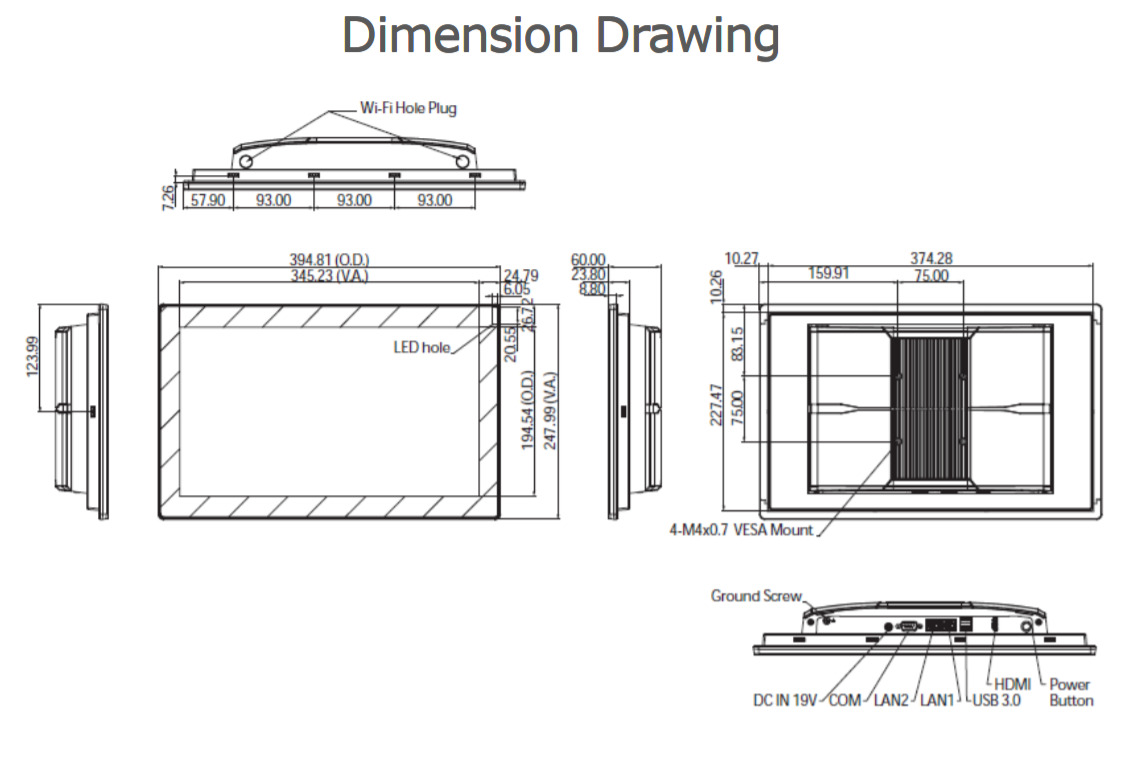 Устройство работает при температуре от 0°C до +50°C и питается от источника постоянного тока 19 В DC. Габаритные размеры составляют 394,81 x 247,99 x 60 мм, что позволяет устанавливать его в ограниченных пространствах. Панельный компьютер Nexcom XPPC16-100 сочетает в себе высокую производительность, надёжность и гибкость, что делает его подходящим для широкого спектра промышленных приложений.