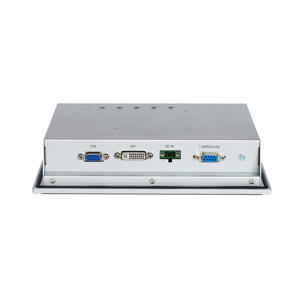 Монитор оснащен видеовходами DVI-D и VGA, что обеспечивает совместимость с различными источниками сигнала. Питание осуществляется от источника постоянного тока с диапазоном напряжений от 12 до 24 В через 2-контактную клеммную колодку. Потребляемая мощность не превышает 5 Вт, что способствует энергоэффективности устройства. Монитор имеет металлический корпус с передней панелью из алюминиево-магниевого сплава, обеспечивая прочность и защиту от внешних воздействий. Класс защиты передней панели IP65 гарантирует пыле- и влагозащищенность, что делает его подходящим для эксплуатации в агрессивных средах. Габаритные размеры составляют 236 мм в ширину, 188 мм в высоту и 49,5 мм в глубину, а вес нетто — 1,5 кг, что облегчает монтаж и установку. Возможность монтажа в панель и на стандартное VESA-крепление 75 x 75 мм расширяет варианты установки устройства в различных промышленных системах.