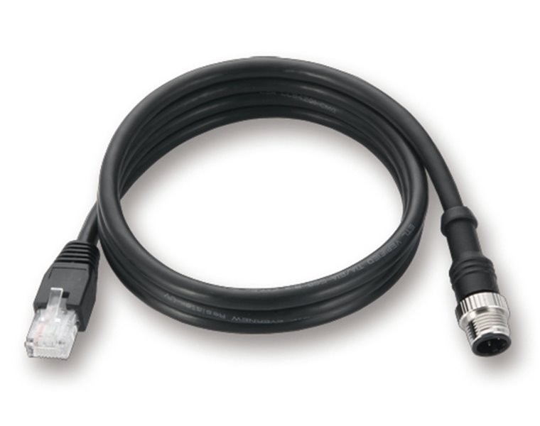 - 8-контактный разъем M12 с кодировкой A на одном конце и разъем RJ45 на другом, обеспечивающий совместимость с различными промышленными устройствами и стандартными Ethernet-портами.
