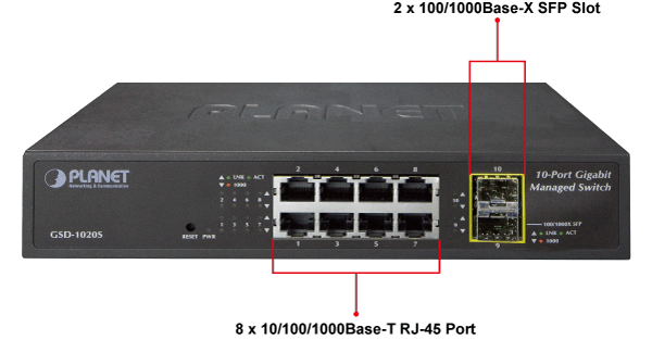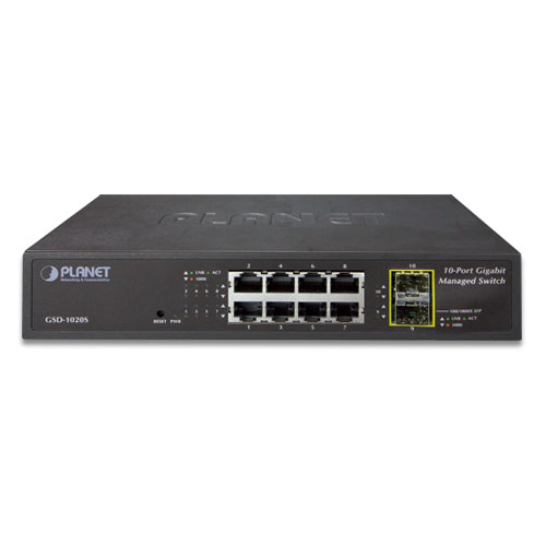 Коммутатор Planet GSD-1020S представляет собой управляемое устройство уровня L2/L4, предназначенное для эффективной организации сетевой инфраструктуры в малых и средних предприятиях, а также в офисах малого формата. Он оснащён 8 портами 10/100/1000Base-T RJ-45 и 2 портами 100/1000Base-X SFP, что обеспечивает гибкость в подключении различных типов устройств и расширение сети.