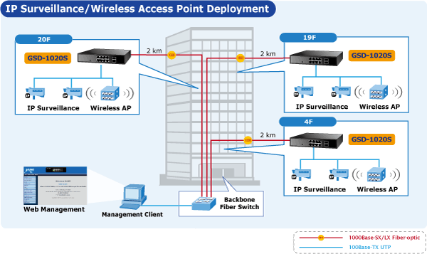 - Управляемость через интуитивно понятный веб-интерфейс, Telnet и SNMP, что облегчает настройку и мониторинг сети.