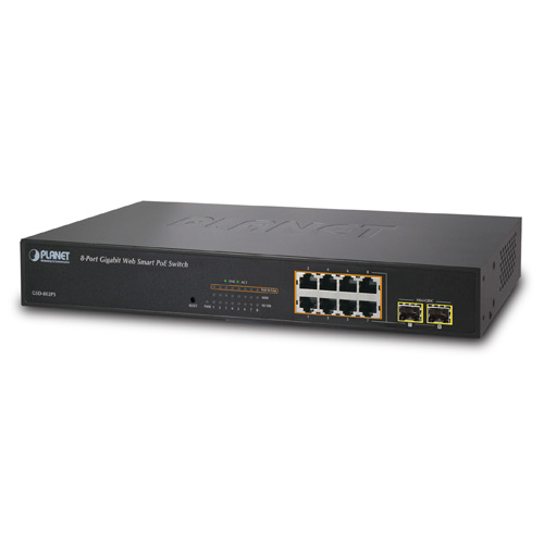 Коммутатор PLANET GSD-802PS представляет собой 8-портовый гигабитный PoE-коммутатор с двумя слотами SFP, обеспечивающий эффективное распределение питания и высокоскоростную передачу данных. Он оснащен 8 портами 10/100/1000 Мбит/с, поддерживающими технологию Power over Ethernet (PoE) по стандарту IEEE 802.3af, что позволяет передавать питание и данные по одному кабелю, упрощая установку и снижая затраты на прокладку проводки.