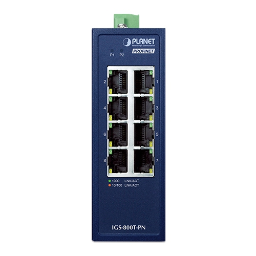Коммутатор PLANET IGS-800T-PN — это промышленный неуправляемый 8-портовый гигабитный Ethernet-коммутатор, предназначенный для обеспечения надежной и быстрой передачи данных в автоматизированных промышленных сетях. Он оснащен 8 портами 10/100/1000BASE-T RJ45 с функцией автосогласования и поддерживает стандарт PROFINET Conformance Class A, что делает его идеальным решением для интеграции в системы промышленной автоматизации.