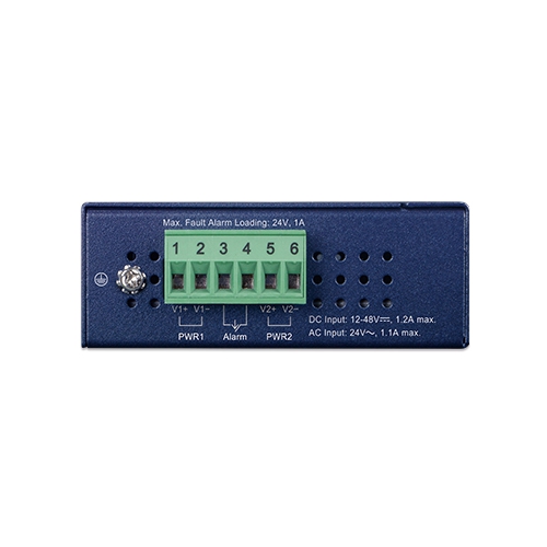 | LED | 3 x LED for system and power: Green: DC Power 1 Green: DC Power 2 Red: Power Alarm 1 x LED for each copper port: Green: 10/100Mbps LNK/ACT |