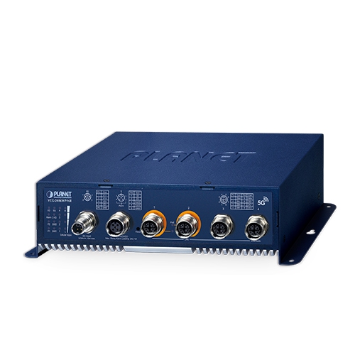 Planet VCG-2406WP-NR представляет собой специализированный промышленный VPN-шлюз безопасности, разработанный для эксплуатации в транспортных сетях и критически важных мобильных развертываниях. Устройство интегрирует передовые технологии сотовой связи 5G NR с проводными интерфейсами Gigabit Ethernet, оснащенными разъемами M12 X-coded. Конструкция шлюза оптимизирована для работы в условиях постоянной вибрации и движения, обеспечивая стабильную передачу данных и электропитание по стандарту IEEE 802.3at PoE+.