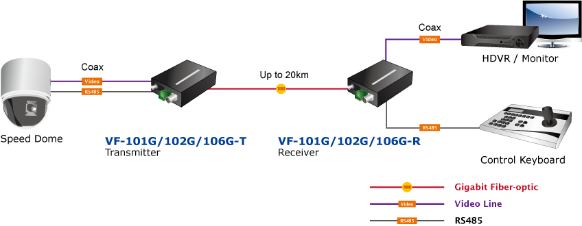 Конвертер VF-102G-KIT идеально подходит для применения в системах видеонаблюдения, где требуется передача сигнала на большие расстояния без потери качества. Он может быть использован в следующих областях:
