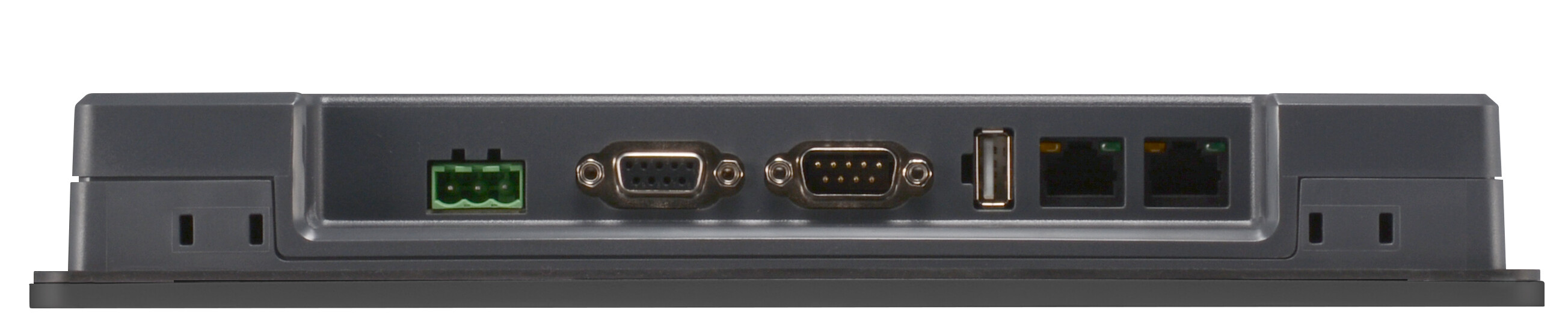 cMT2108X2 оснащена тремя последовательными портами: COM1 (RS-232), COM2 (RS-485) и COM3 (RS-232/RS-485), а также двумя портами Ethernet (10/100 BaseTx и 10/100/1000 BaseTx), что обеспечивает гибкость подключения к различным устройствам и системам. USB-порт 2.0 позволяет подключать дополнительные периферийные устройства. Поддержка протоколов OPC UA и MQTT расширяет возможности интеграции с современными системами автоматизации и IoT.