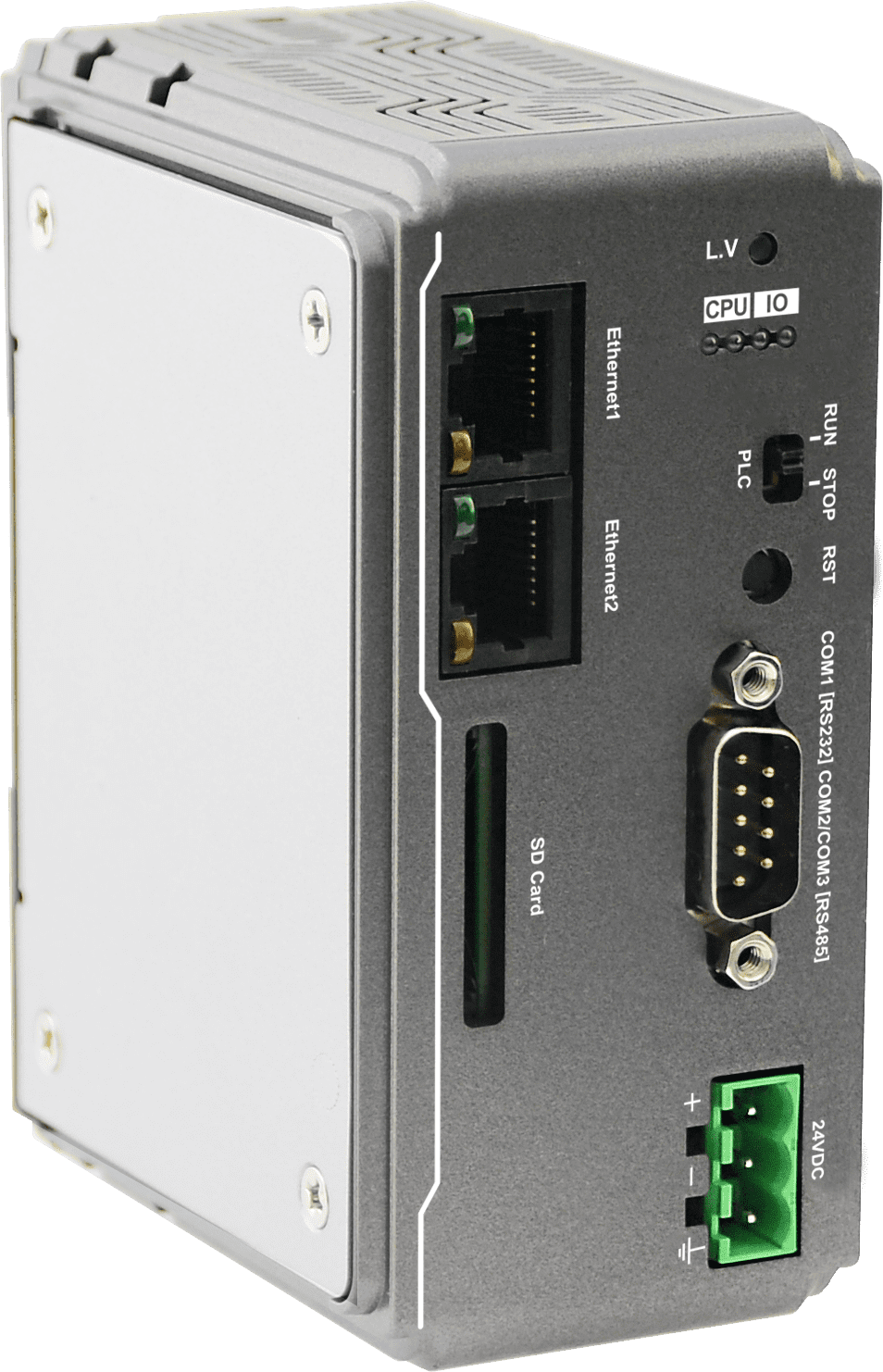 - Интерфейсы: два порта Ethernet для подключения к сети, три последовательных порта для связи с периферийными устройствами, слот для SD/SDHC-карты для расширения памяти.