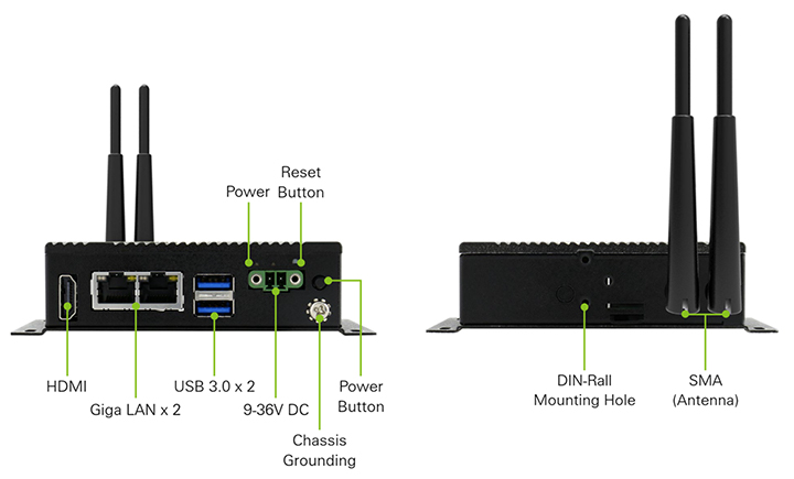 Устройство поддерживает широкий диапазон входного напряжения от 9 до 36 В DC, что делает его совместимым с различными источниками питания в промышленной среде. Пассивная система охлаждения без вентиляторов обеспечивает бесшумную работу и повышает надёжность.
