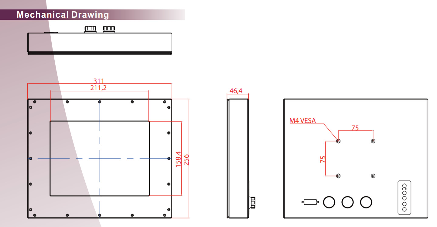 - Размеры: Габариты 311 x 256 x 46,4 мм; VESA-крепление 75 x 75 мм для монтажа на стену или стойку.