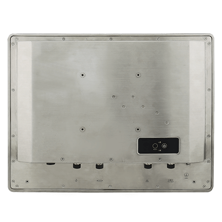 Корпус устройства выполнен из нержавеющей стали с защитой от пыли и влаги по стандарту IP65, что гарантирует его надёжную работу в агрессивных средах. Панельный компьютер оснащён резистивным сенсорным экраном, обеспечивающим точное управление в условиях повышенной влажности или при использовании в перчатках. Внешний адаптер питания поддерживает входное напряжение 9–36 В DC, что расширяет возможности подключения к различным источникам питания.