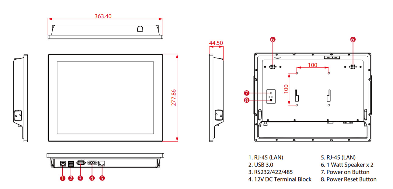 - Гибкость монтажа: возможность монтажа в панель и крепление по стандарту VESA 100 x 100 мм обеспечивают удобство установки в различных условиях.