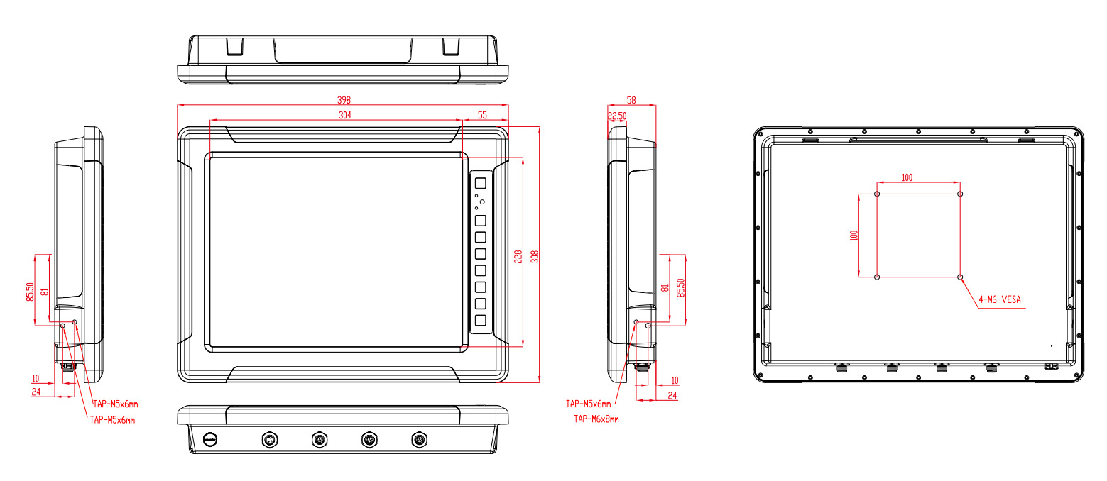 - Высокая степень защиты: IP67 гарантирует полную защиту от пыли и водонепроницаемость, что делает монитор пригодным для эксплуатации в экстремальных условиях.