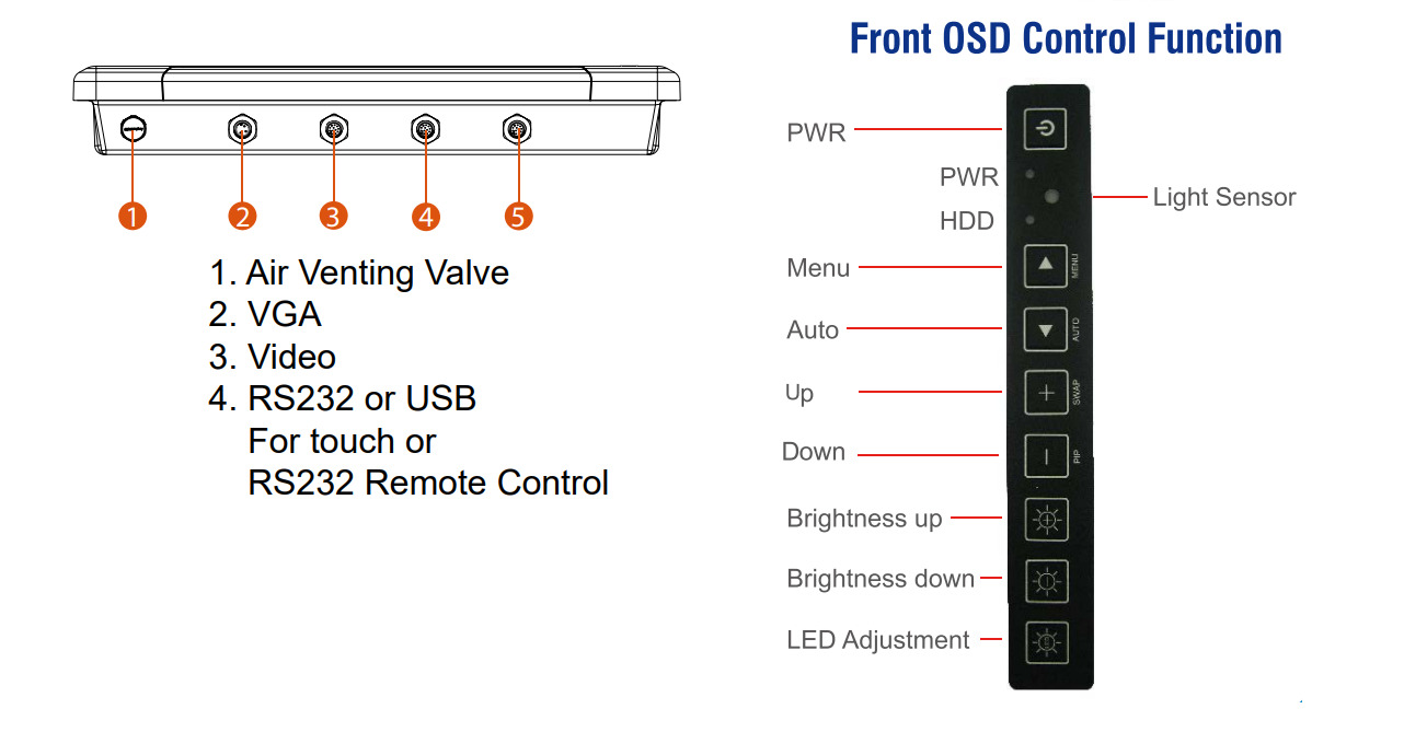 | Кнопки управления OSD меню | Да (на передней панели) |