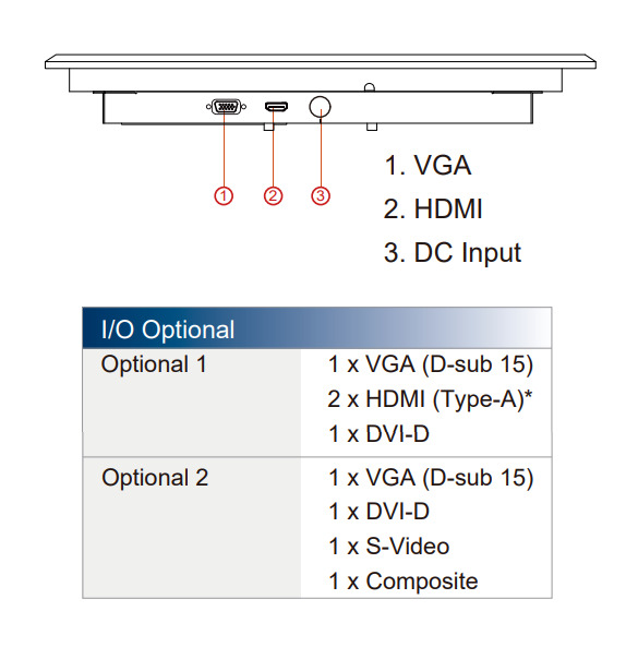 - Конструкция: Передняя панель с защитой по стандарту IP65, обеспечивающая защиту от пыли и влаги, что делает монитор подходящим для эксплуатации в сложных условиях.