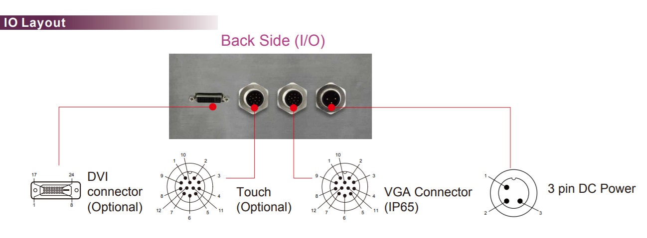 - Интерфейсы: 1 x VGA, 1 x DVI (опционально), 1 x RS-232 для сенсорного управления.