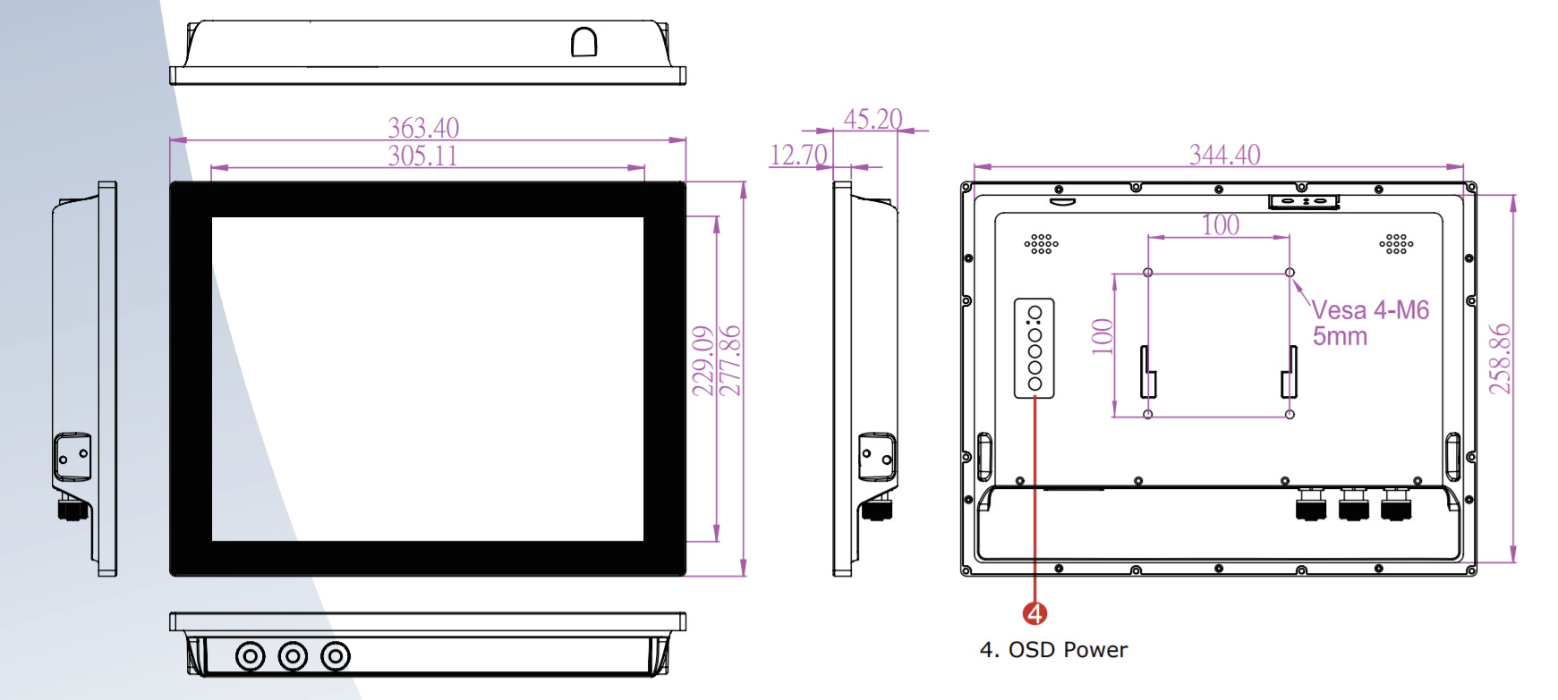 - Широкий температурный диапазон эксплуатации: от -15°C до +55°C, что позволяет использовать монитор в различных климатических условиях.