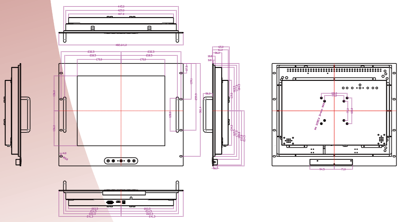 - Габаритные размеры: 482,6 x 399 x 65 мм, что позволяет интегрировать монитор в ограниченные пространства.