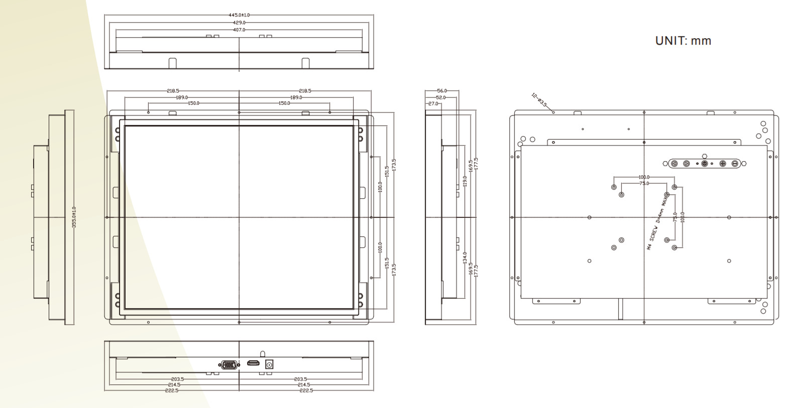 - Гибкость монтажа: Возможность монтажа с использованием VESA крепления или встраивания в панель позволяет адаптировать монитор под различные требования.