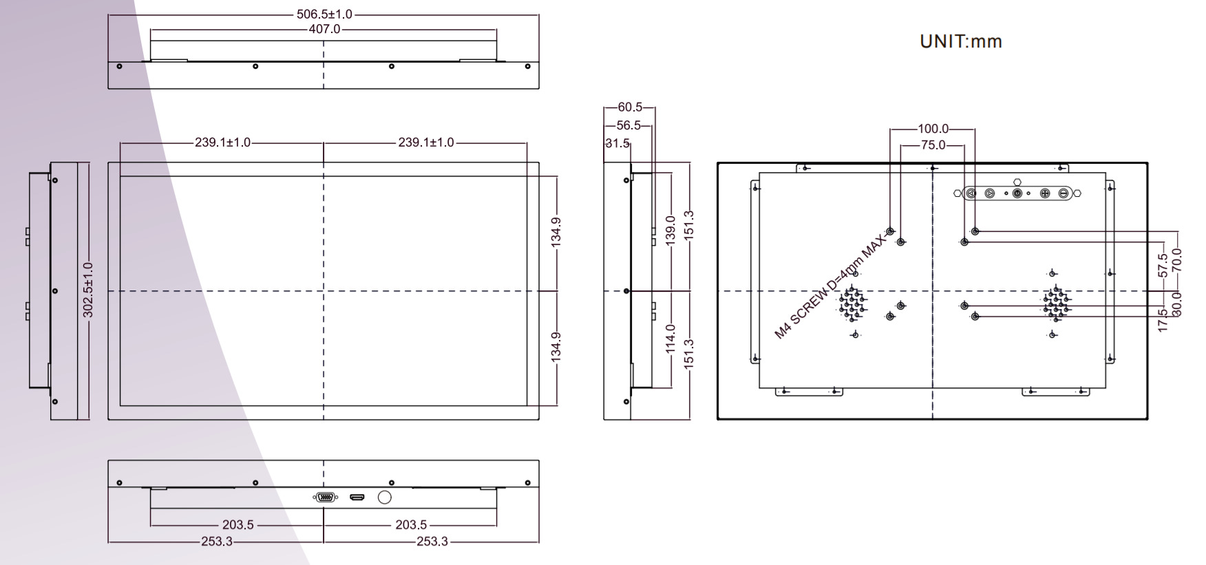 - Гибкость монтажа: Возможность установки на стену или встраивания в оборудование с помощью VESA-крепления.