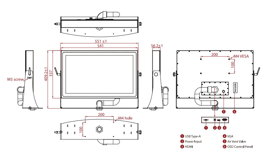 - Интерфейсы: 1 x VGA, 1 x USB Type-A для управления сенсорным экраном; опционально: 1 x HDMI, 1 x DVI.