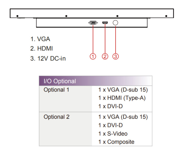 - Интерфейсы: 1 x VGA (D-sub 15), 1 x HDMI (Type-A), обеспечивающие гибкость подключения к различным устройствам.