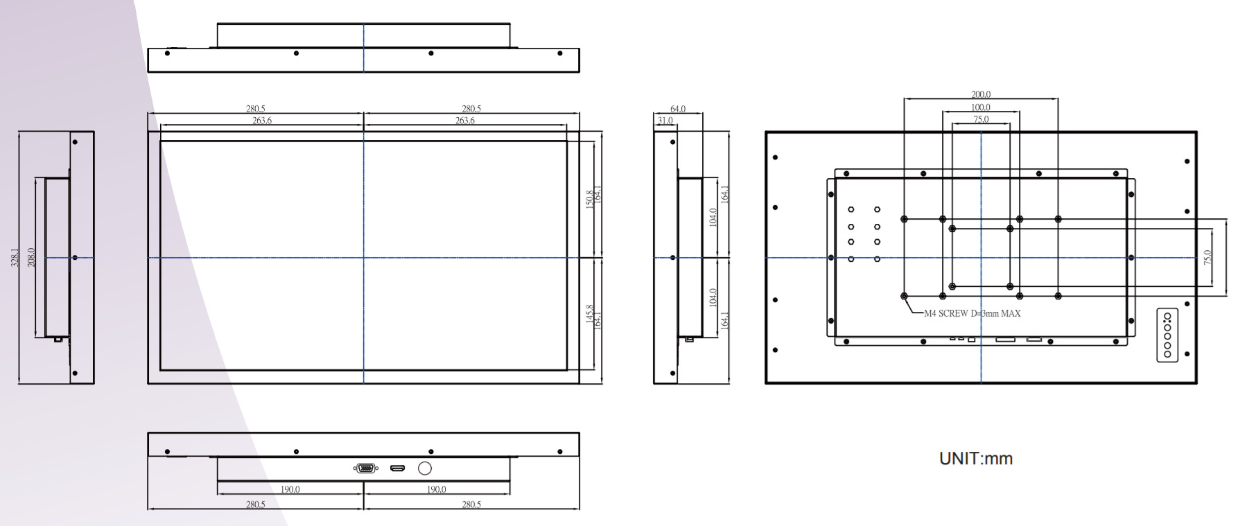 - Габариты: 561 x 328,1 x 64 мм, с возможностью монтажа на стену или стол с помощью VESA-крепления (100 x 100 мм, 75 x 75 мм, 200 x 100 мм).