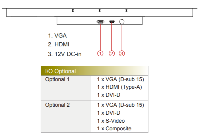 - Интерфейсы ввода: 1 x VGA, 1 x HDMI (опционально), 1 x DVI (опционально).