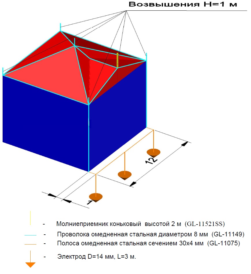Комплект молниезащиты ZANDZ для частного дома с четырехскатной крышей без дымоходных труб